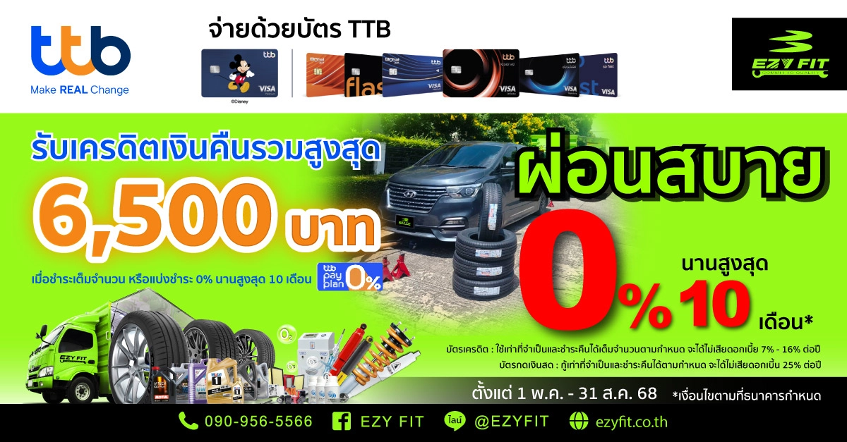 ช้อปบริการกับอีซี่ ฟิต ผ่อน 0% นาน 10 เดือน และ แลกรับเครดิตเงินคืนรวมสูงสุด 6,500 บา...