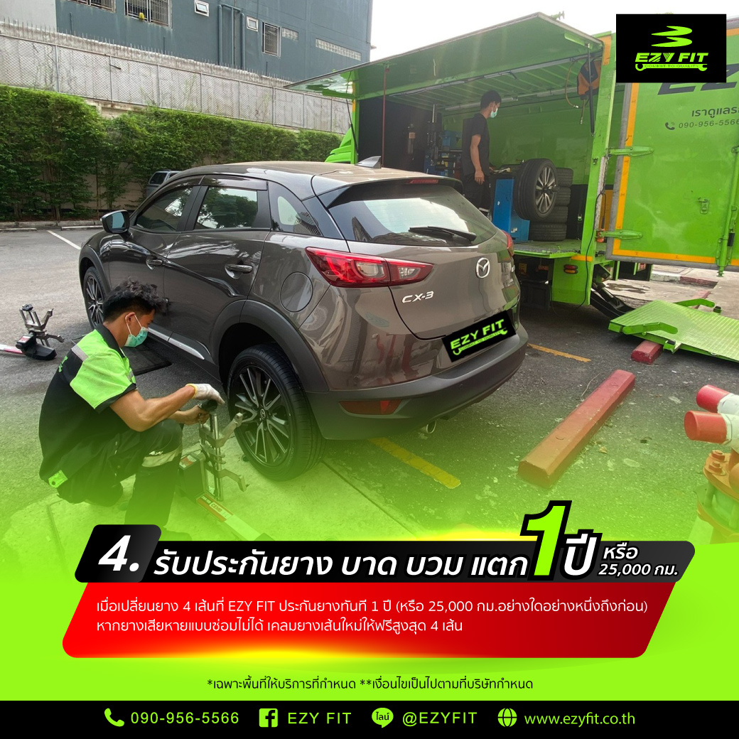 เมื่อเปลี่ยนยางครบ 4 เส้นกับอีซี่ ฟิต มีรับประกัน บาด บวม แตก *หากยางเสียหายแบบซ่อมไม่ได้ เปลี่ยนเส็นใหม่ได้ทันที!!