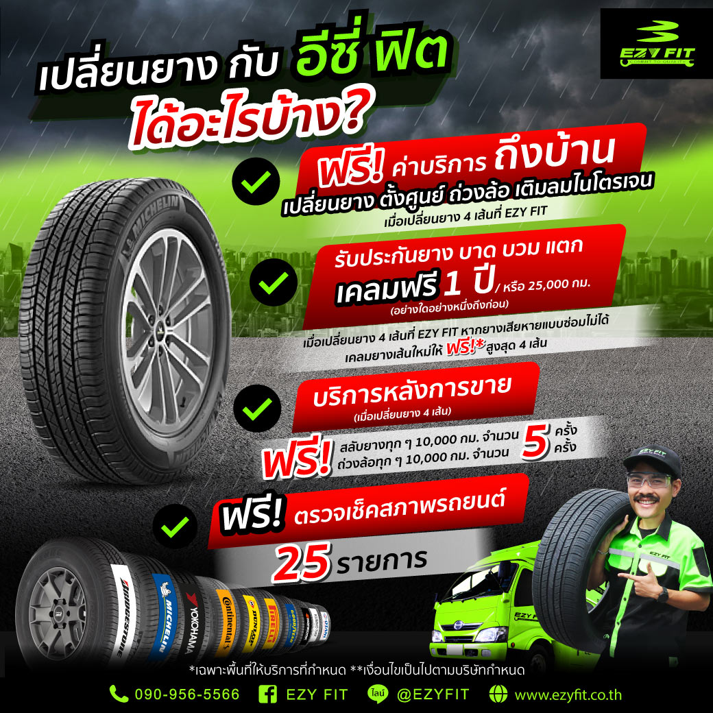 EZY FIT บริการเปลี่ยนยางนอกสถานที่ บริการถึงที่ทำงาน ย่าน อ.เมืองปทุมธานี