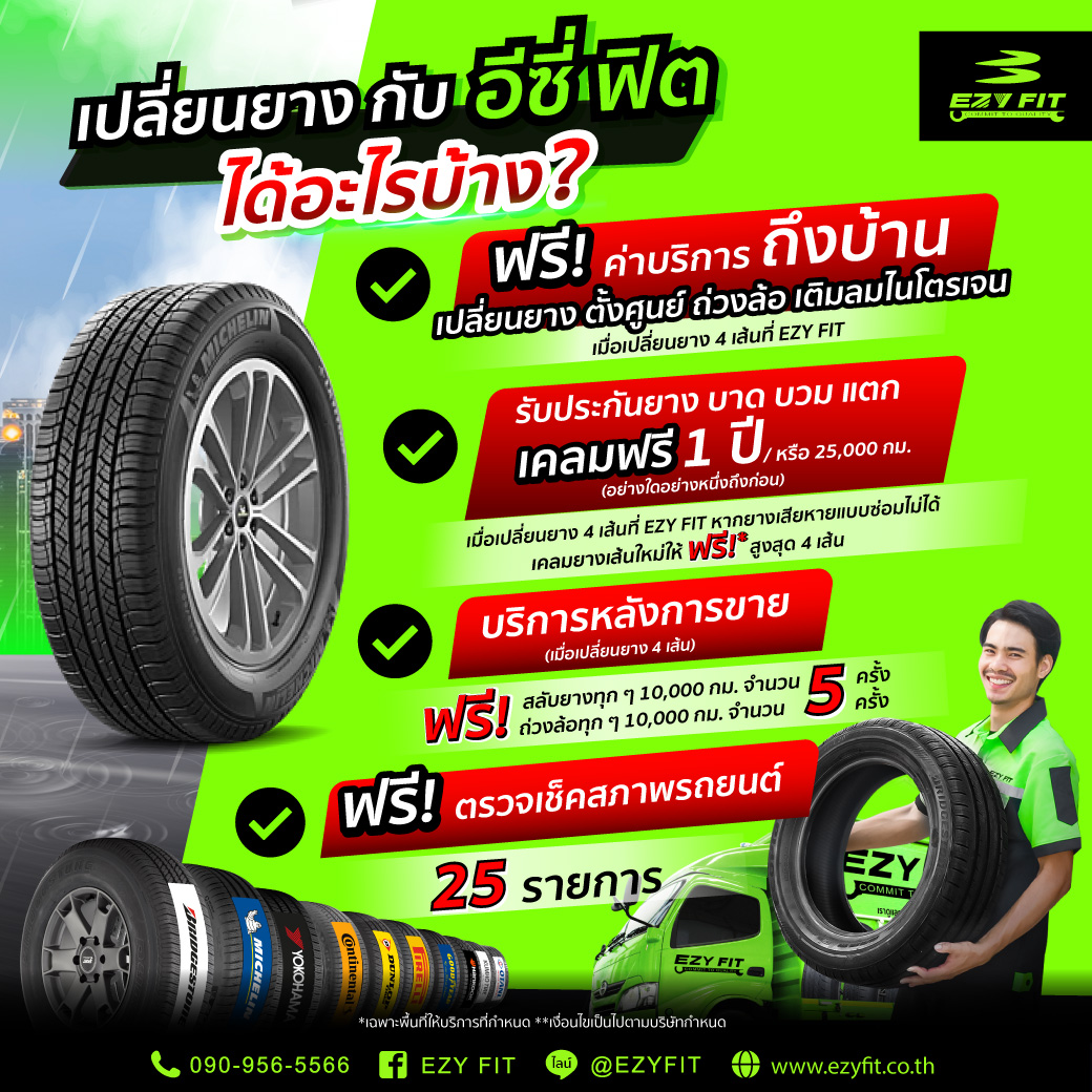 สลับยางฟรี ทุกๆ 10,000 กม. จำนวน 5 ครั้ง