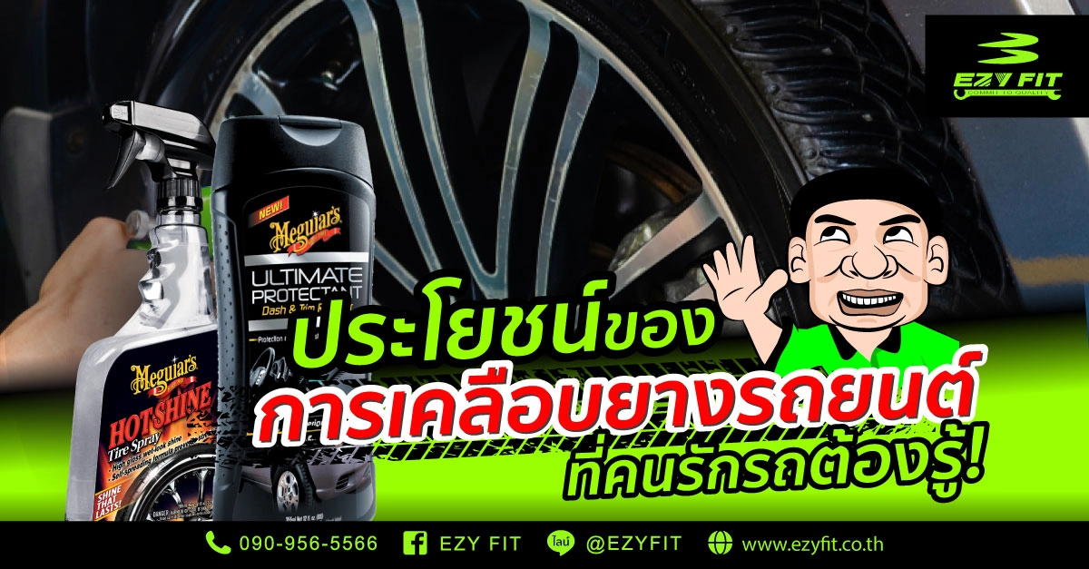 และนี่คือเรื่องราวของการเคลือบยางรถยนต์ที่เอามาฝากกัน ใครรักรถต้องรู้ไว้ เพื่อยืดอายุการใช้งานของคุณให้นานยิ่งขึ้น ช่วยให้ยางเงางาม เสริมความสวยให้รถยนต์ของคุณ ไม่ว่าจะเป็นแบบน้ำ ครีม โฟมล้วนแต่เป็นน้ำยาเคลือบยางที่มีคุณสมบัติรักษาอย่างทั้งสิ้น EZY FIT มีบริการ น้ำยาเคลือบเงายาง ชนิดเงามาก และ น้ำยาเคลือบเงายางและพลาสติก (โลชั่น) คุณภาพสูงให้คุณได้เลือกไปรักษายางรถยนต์ของคุณ แต่สำหรับใครที่ยางสึกจนไม่สามารถแก้ได้ต้องเปลี่ยนยางรถยนต์ ตั้งศูนย์ ถ่วงล้อใหม่ก็สามารถติดต่อที่เราได้เช่นเดียวกัน เรื่องรถเรื่องยางไว้ใจเราได้เลย! สอบถามโทร. 090-956-5566