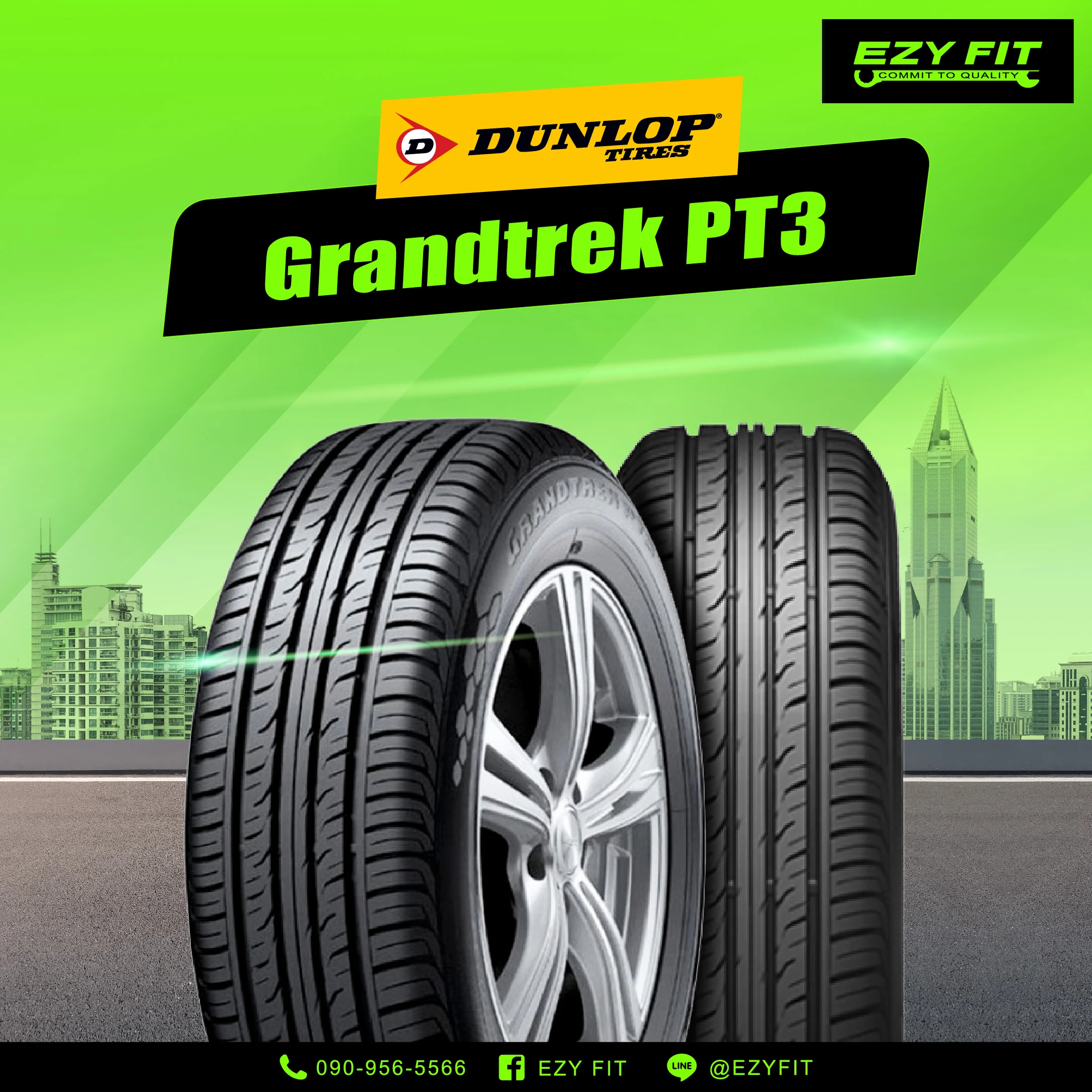 Dunlop Grandtrek PT3 เป็นยางรถยนต์คุณภาพสูงที่เหมาะกับรถยนต์ประเภท SUV และ PPV มีขนาดยางรองรับตั้งแต่ 16 - 20 นิ้ว อัดแน่นไปด้วยเทคโนโลยีสุดล้ำที่จะช่วยให้คุณขับรถ