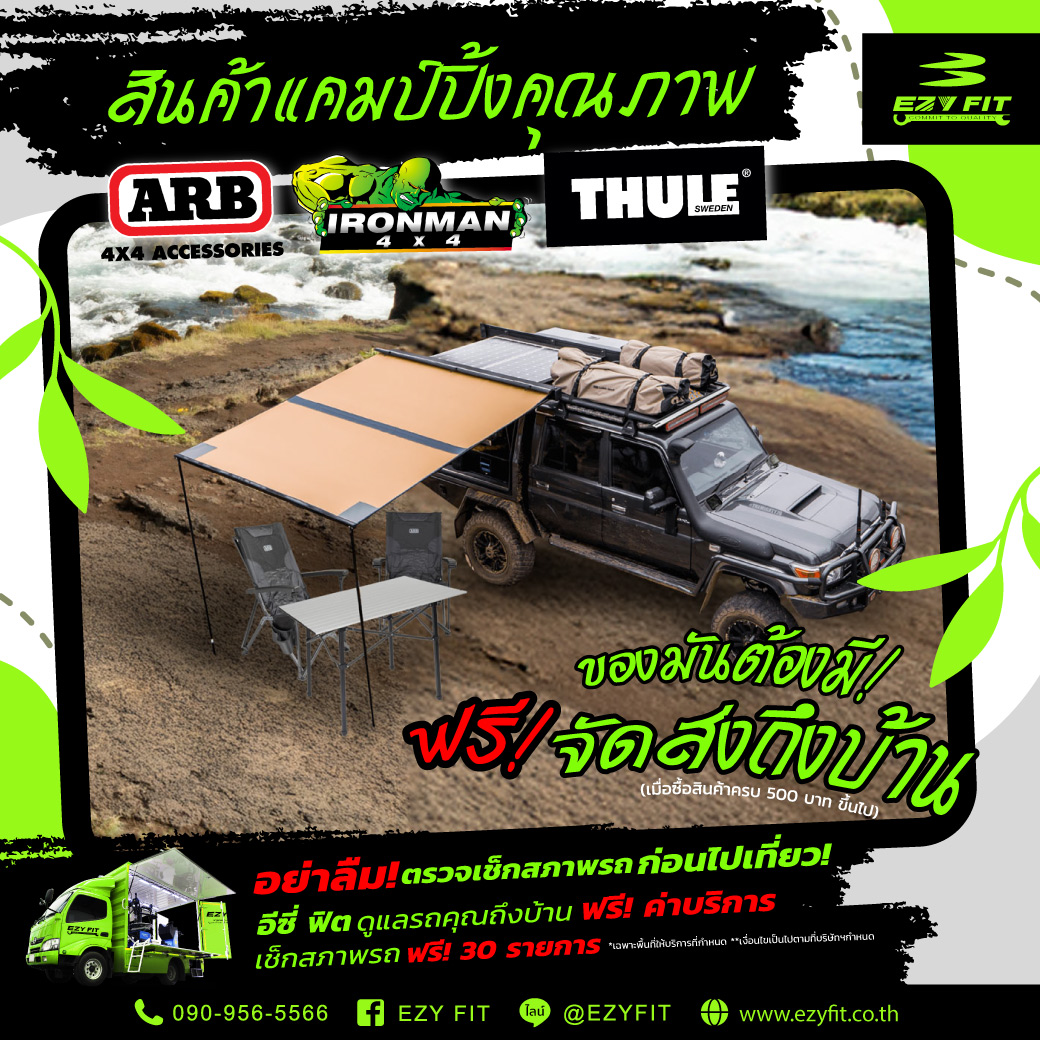 สะดวกสบายและสนุกไปกับท่องเที่ยวจนจบทริป….อีซี่ ฟิตจำหน่ายอุปกรณ์สำหรับนักเดินทางหลากหลายแบรนด์ อาทิเช่น ARB IRONMAN และ THULE สินค้าจากแบรนด์คุณภาพ แข็งแรงทนทาน