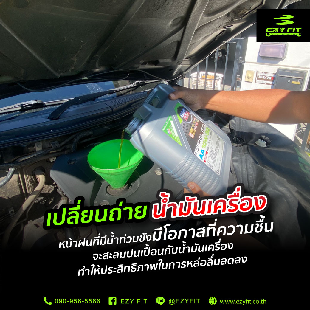 การเปลี่ยนถ่ายน้ำมันเครื่องในช่วงหน้าฝนนี้มีความสำคัญเป็นอย่างมากเพราะน้ำฝนอาจจะเข้าไปผสมกับน้ำมันเครื่องจะทำให้ประสิทธิในการหล่อลื่นลดลง เครื่องยนต์สะดุดหรือน้ำฝนอาจจะ