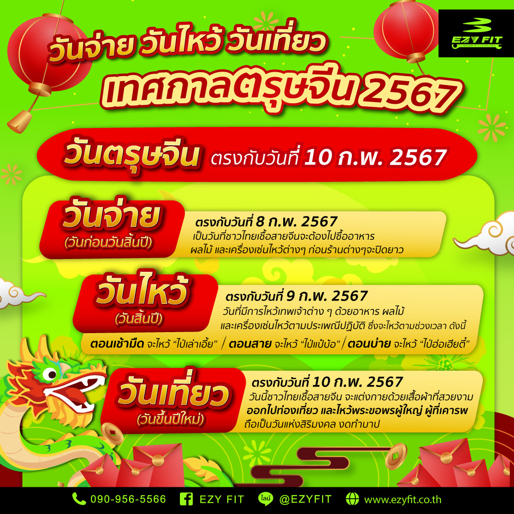 ตรุษจีนถือว่าเป็นวันปีใหม่ วันเริ่มต้นใหม่รับสิ่งดีๆของคนไทยเชื้อสายจีน ดังนั้นเราควรเตรียมตัวให้พร้อมเพื่อจะได้ปฎิบัติตัวเตรียมรับความเฮง!! และเพื่อเสริมสร้างความเป็นสิริมงคล