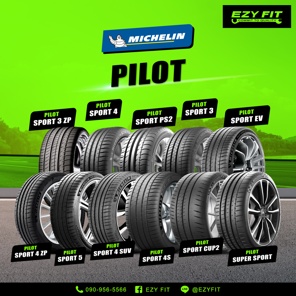เป็นยางรถยนต์สมรรถนะสูงในตำนานของมิชลินที่จะทำให้คุณสนุกไปกับการขับขี่ ทั้งบนท้องถนนในชีวิตประจำวัน และบนสนามแข่งขัน ตัวอย่างรุ่น MICHELIN PILOT