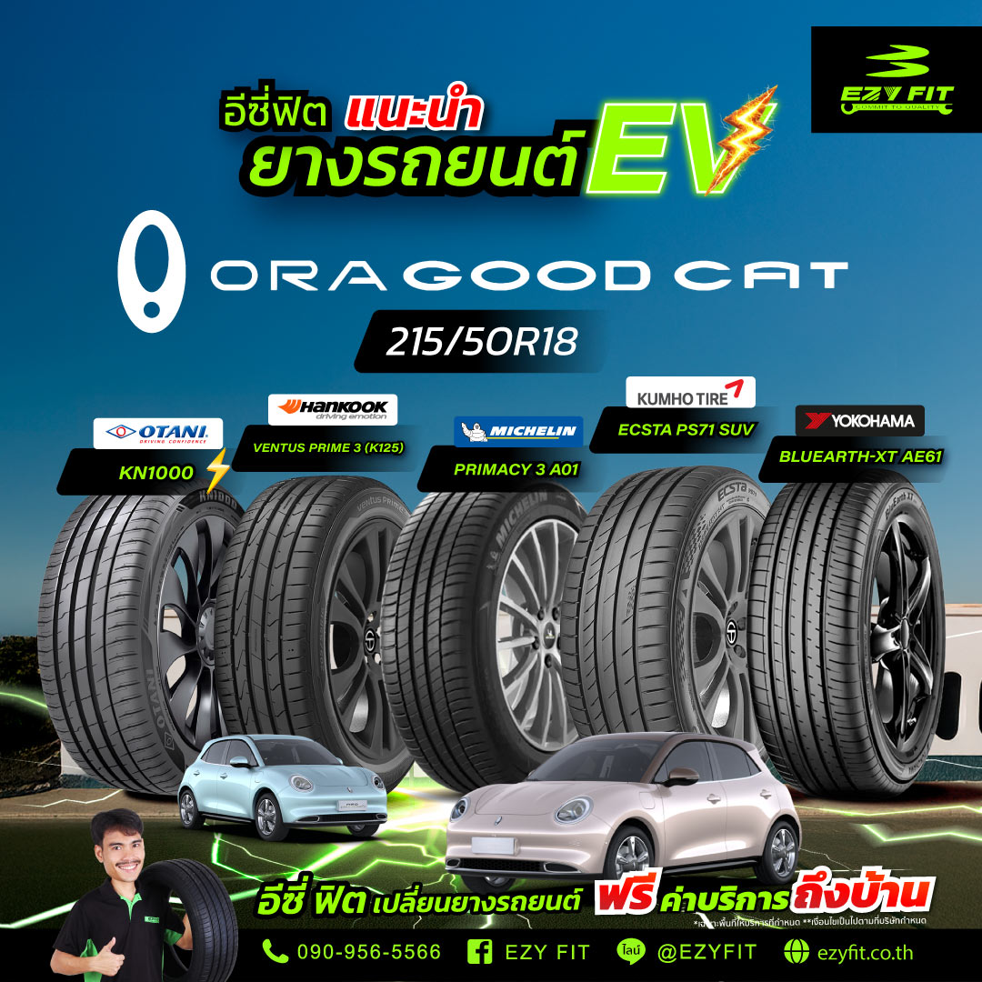 🔌⚡ แนะนำยางรถยนต์ไฟฟ้า EV สำหรับ “ ORA GOODCAT ” ขนาดยาง 215/50R18 เจ้าเหมียวไฟฟ้าสุดน่ารักมาพร้อมเทคโนโลยีและระบบความปลอดภัยแบบครบครัน…..