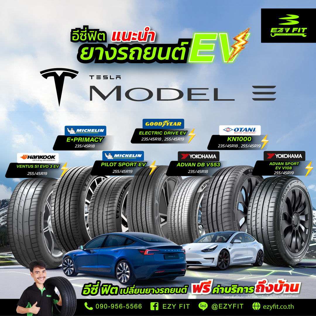 🔌⚡ ยางรถยนต์ไฟฟ้า EV สำหรับ ” TESLA MODEL 3 ” รถเก๋งซีดานแนวสปอร์ต ออกแบบมาเพื่อการใช้งานที่ทรงประสิทธิภาพ มีเทคโนโลยีที่เรียบหรู ราคาคุ้มค่าจับต้องได้