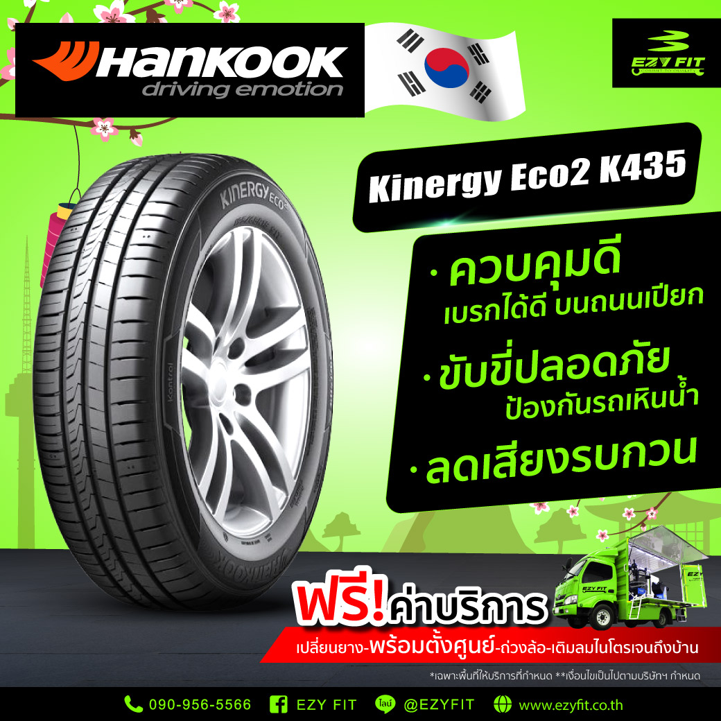 Hankook Kinergy ECO2 (K435) ยางรถยนต์สำหรับรถยนต์นั่ง ที่เป็นทางเลือกอันชาญฉลาดสำหรับผู้ขับขี่และสภาพแวดล้อม และประหยัดพลังงาน