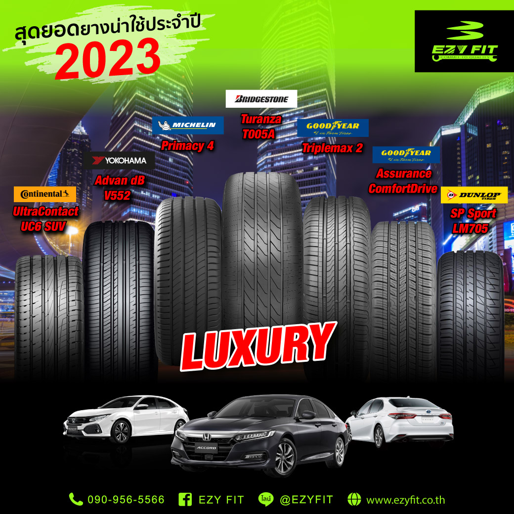 🎉 สุดยอดยางน่าใช้ประจำปี 2023 สำหรับ Luxury Car '🚗Bridgestone Turanza T005A ,Yokohama Advan dB V552 , Dunlop SP Sport LM705 , Michelin Primacy 4 , Continental UitraContact UC6 SUV , Goodyear Triplemax2 , Goodyear Assurance ComfortDrive