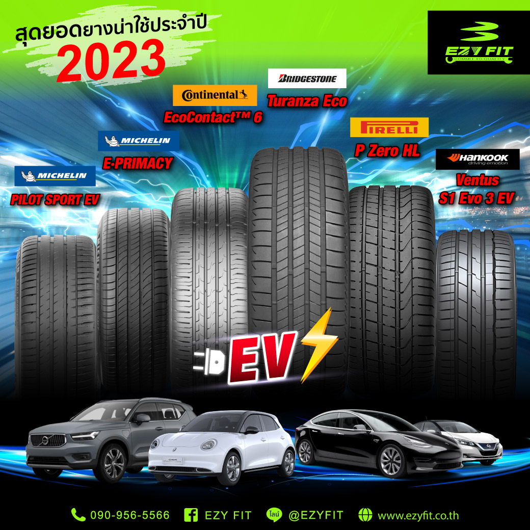🎉 สุดยอดยางน่าใช้ประจำปี 2023 สำหรับ EV Car '🚗Bridgestone Turanza Eco ,Pirelli P Zero HL , Michelin Pilot Sport EV , Michelin E-Primacy , Continental EcoContact 6 , Hankook Ventus S1 Evo 3 EV