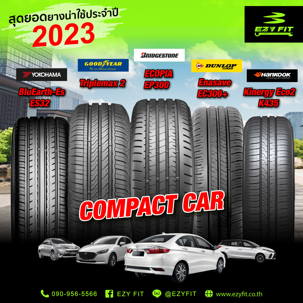 🎉 สุดยอดยางน่าใช้ประจำปี 2023 สำหรับ Compact Car '🚗Bridgestone Ecopia EP300 , Yokohama BluEarth-Es ES32 , Dunlop Enasave EC300+ , Hankook Kinergy Eco2 K435 , Goodyear Triplemax 2