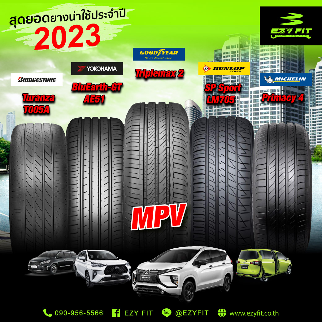 🎉 สุดยอดยางน่าใช้ประจำปี 2023 สำหรับ MPV Car '🚗Bridgestone Turanza T005A ,Yokohama BluEarth-GT AE51 , Michelin Primacy4 , Goodyear Triplemax 2 , Dunlop SP Sport LM705