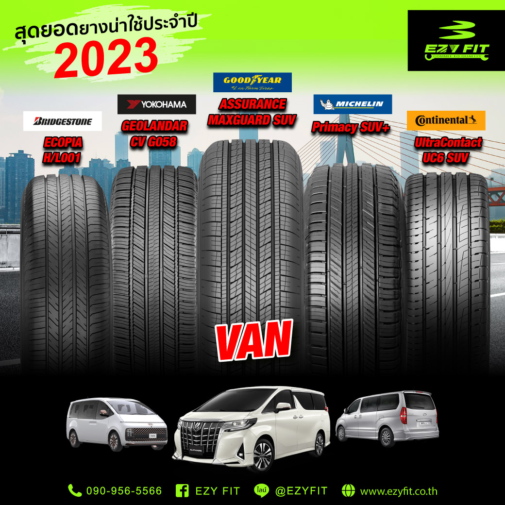 🎉 สุดยอดยางน่าใช้ประจำปี 2023 สำหรับ VAN Car '🚗Bridgestone Ecopia H/L001 ,YokohamaGeolandar CV G058 , Michelin Primacy SUV+ , Goodyear Assurance Maxguard SUV , Continental UltraContact UC6 SUV