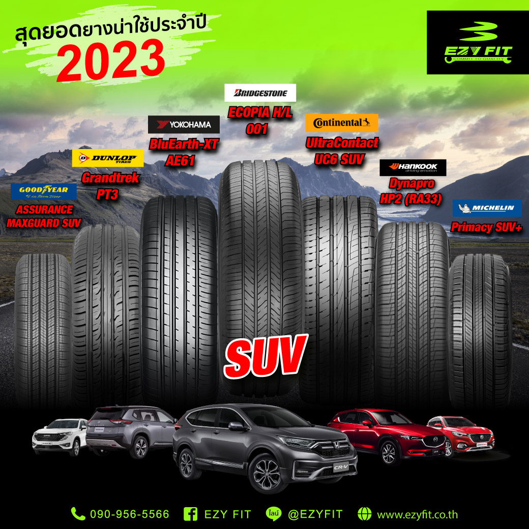 🎉 สุดยอดยางน่าใช้ประจำปี 2023 สำหรับ SUV Car '🚗 Yokohama BluEarth-XT AE61 , Goodyear Assurance Maxguard SUV , Bridgestone Ecopia H/L 001 , Continental Ultracontact UC6 SUV , Hankook Dynapro HP2 RA33 , Michelin Primacy SUV+