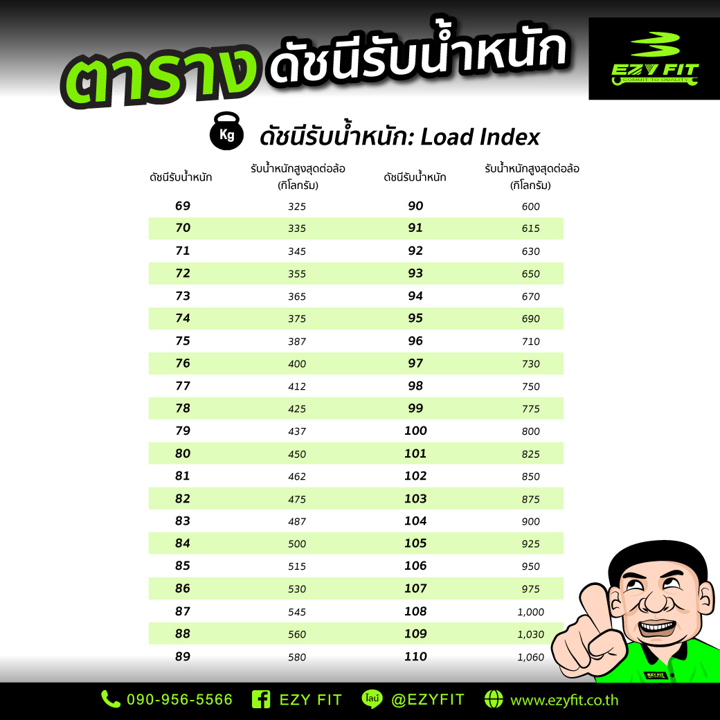 ตัวอย่างตารางดัชนีรับน้ำหนัก Load Index