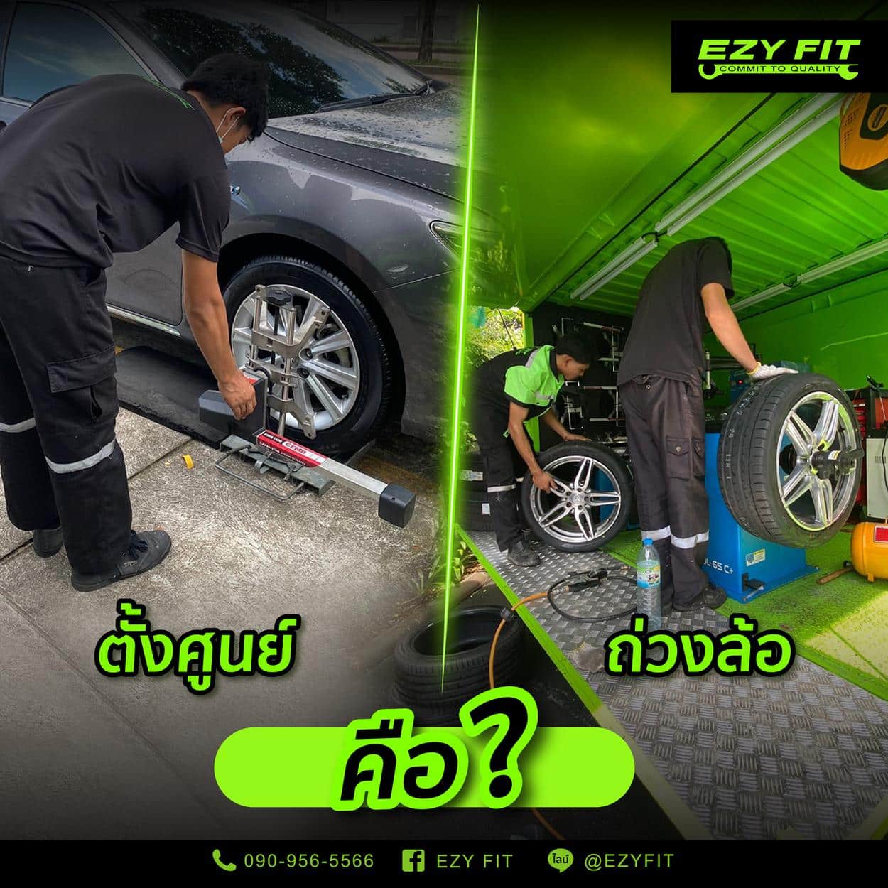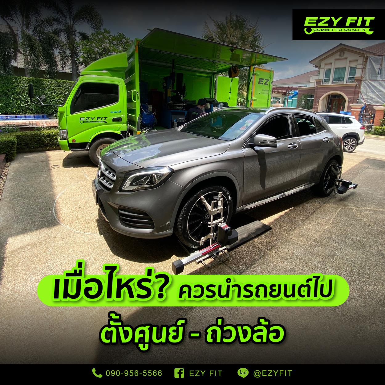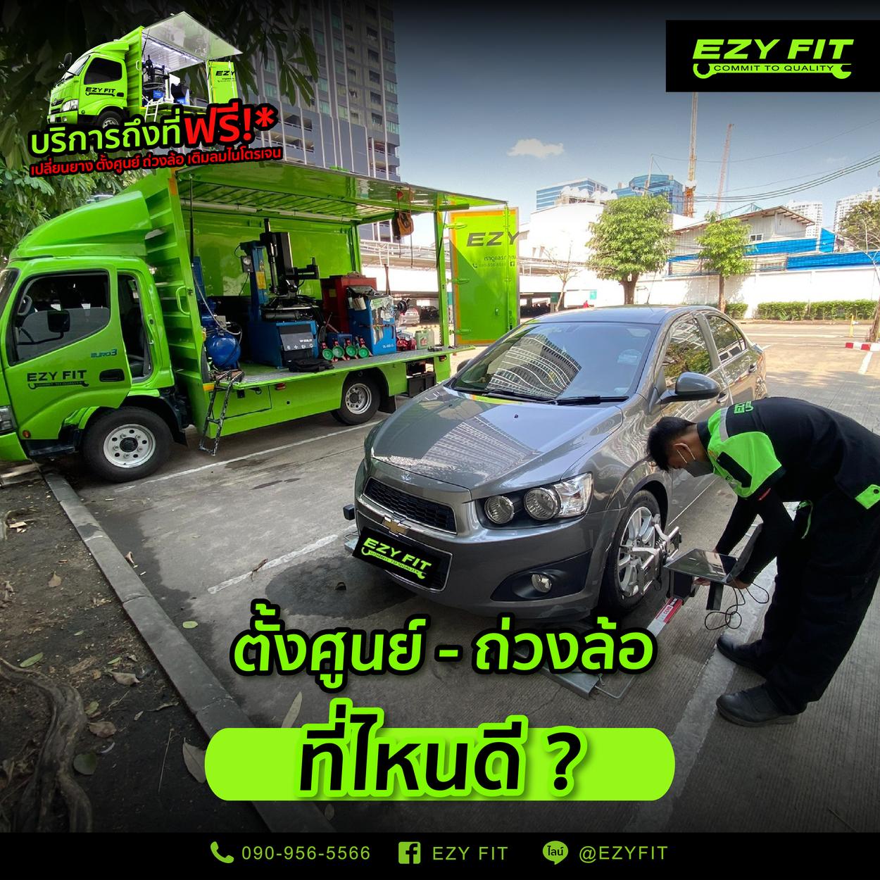 จะเห็นได้ว่า การตั้งศูนย์ถ่วงล้อเป็นหนึ่งในสิ่งที่ผู้ขับขี่ต้องให้ความสำคัญ เพราะส่งผลต่อประสิทธิภาพการขับขี่รถยนต์อย่างมาก สำหรับใครที่ยังไม่เคยนำรถยนต์ไปตั้งศูนย์ หรือถ่วงล้อ ควรที่จะนำรถยนต์ไปตั้งศูนย์และถ่วงล้อทุก ๆ 8,000 - 10,000 กิโลเมตร หรืออย่างน้อยปีละหนึ่งครั้ง เพื่อการขับขี่ที่ปลอดภัยมากยิ่งขึ้น ซึ่งหากใช้บริการเปลี่ยนยางกับ EZY FIT รับฟรีบริการหลังการขาย สลับยาง ถ่วงล้อ ฟรี ทุก ๆ 10,000 กม. จำนวน 5 ครั้ง ให้ถึงที่บ้าน พร้อมรับส่วนลดค่าบริการตั้งศูนย์ 50% หากสนใจ สามารถสอบถามข้อมูลเพิ่มเติมได้ที่เบอร์โทรศัพท์ 090-956-5566 หรือ Line OA @EZYFIT แอดได้เลย ไม่ต้องรอ!