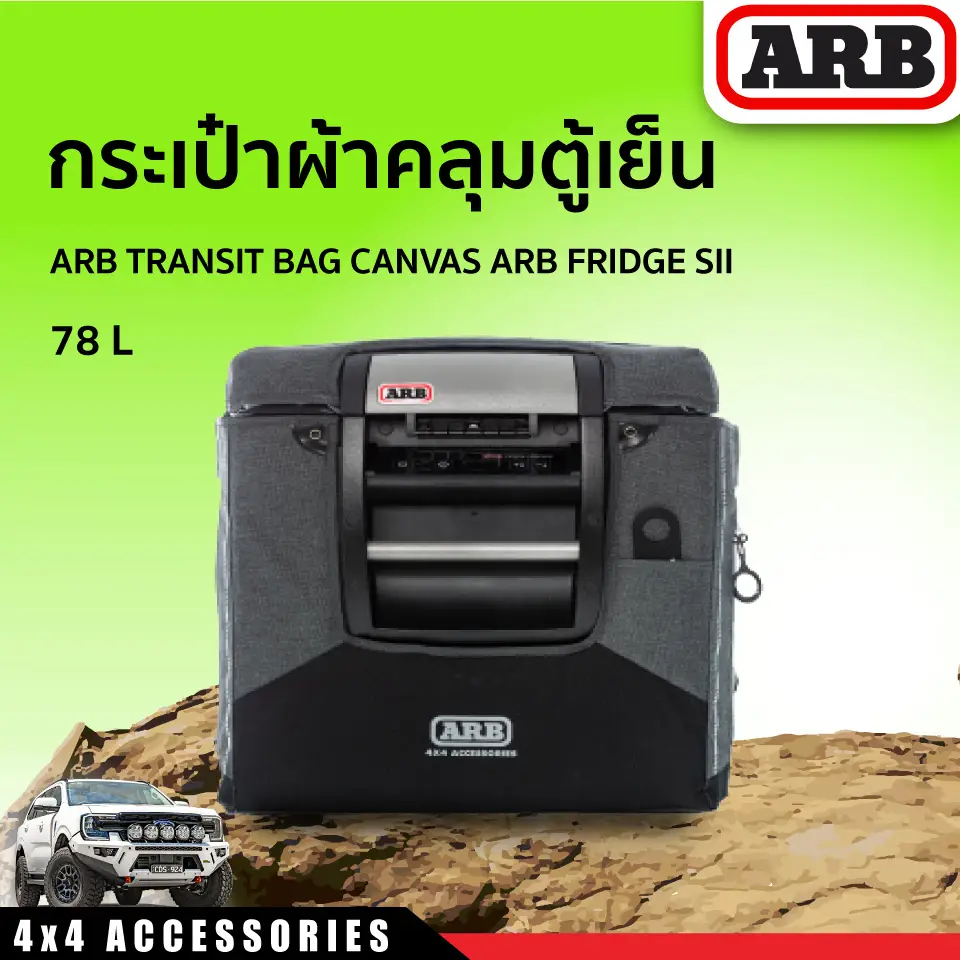 กระเป๋าผ้าคลุมตู้เย็นเหมาะสำหรับตู้เย็น ARB ขนาดความจุ 78 ลิตร รักษาตู้เย็นของคุณให้ดูเหมือนใหม่ตลอดเวลา ช่วยป้องกันตู้เย็นของคุณจากรอยบุบและรอยขีดข่วนและยังให้ฉนวนกันความร้อนเพิ่มเติมในอุณหภูมิสูง ทำจากวัสดุที่แข็งแรงทนทานการใช้งาน ภายในกระเป๋ายังมีช่องกระเป๋าด้านข้างที่สะดวกสำหรับเก็บสิ่งของต่าง ๆ เช่นสายไฟหรือหนังสือคู่มือคำสั่งและช่องเก็บสายเคเบิล เป็นต้น