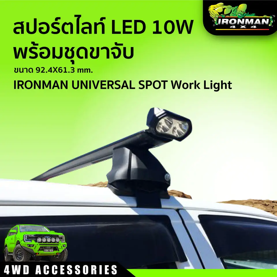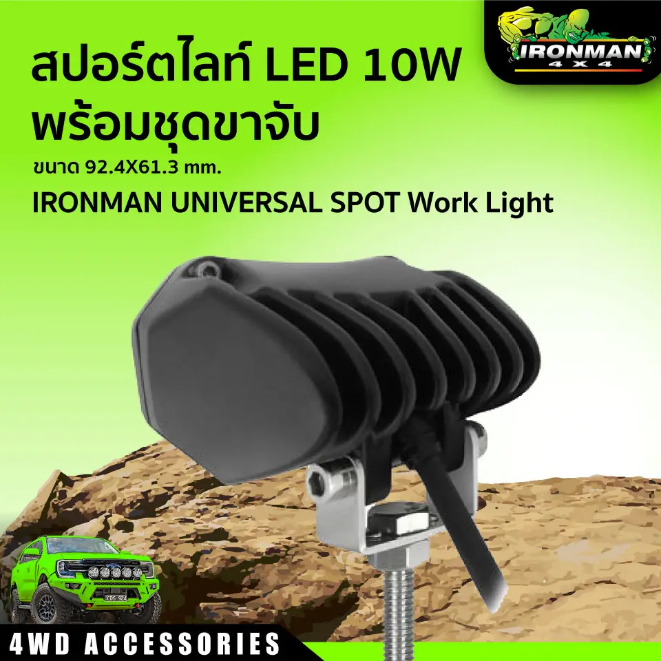 Ironman UNIVERSAL SPOT Work Light จะทำให้ค่ำคืนของคุณสว่างไสว ออกแบบมาเพื่อตอบสนองความต้องการของสภาพถนนแบบออฟโรดและบนท้องถนน ใช้พลังงานต่ำและผสมผสานกับความสวยงามของรถคุณ