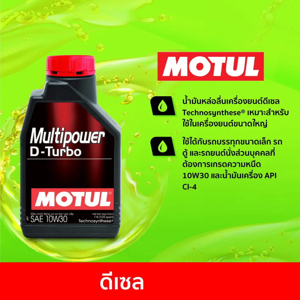 MULTIPOWER D-TURBO 10W-30 1L เหมาะสำหรับเครื่องยนต์ดีเซลทั้งรุ่นเก่าและใหม่ ที่มีระบบหมุนวนไอเสีย (EGR) รองรับทั้งรถ SUV, รถกระบะขนส่ง, รถตู้, รถโดยสาร