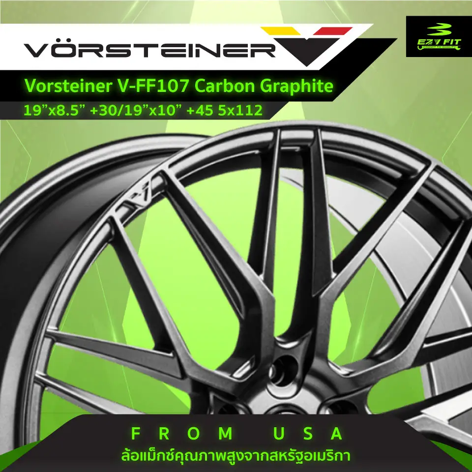VORSTEINER ล้อแม็กซ์คุณภาพสูง น้ำหนักเบา มีความทันสมัย โดดเด่นและมีเอกลักษณ์เฉพาะตัว -ขนาด 19"X8.5",19"X10.0" -OFFSET 30,45MM. -สี CARBON GRAPHITE รุ่นรถที่แนะนำBMW F30, F32