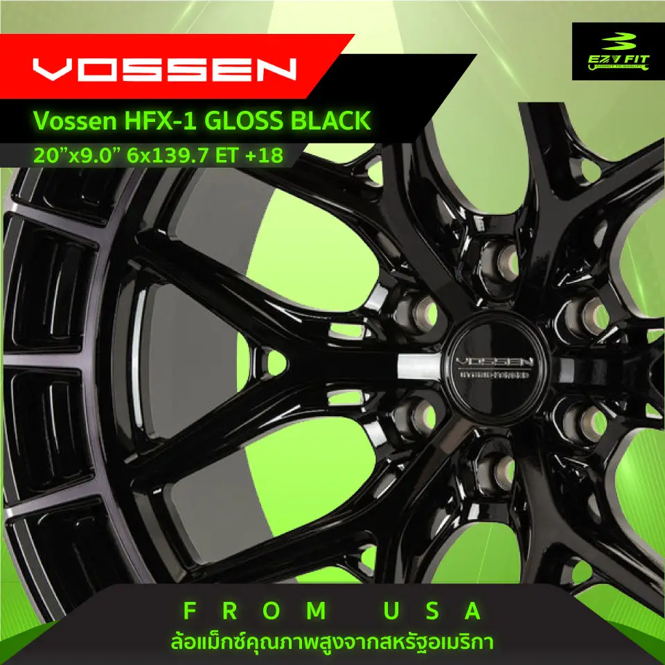 VOSSEN ล้อแม็กซ์คุณภาพสูง ผู้ผลิตล้อที่มีประสบการณ์มากกว่า 30 ปี FROM USA ล้อ HFX-1 6-LUG HYBRID FORGED SERIES -ขนาด 20"X9.0" -PCD 6×139.7 -สี GLOSS BLACK ดำเงา