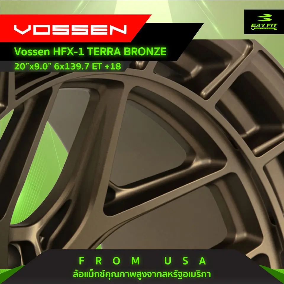 VOSSEN ล้อแม็กซ์คุณภาพสูง ผู้ผลิตล้อที่มีประสบการณ์มากกว่า 30 ปี FROM USA ล้อ HFX-1 6-LUG HYBRID FORGED SERIES -ขนาด 20"X9.0" -PCD 6×139.7 -สี TERRA BRONZE ทองไหม้