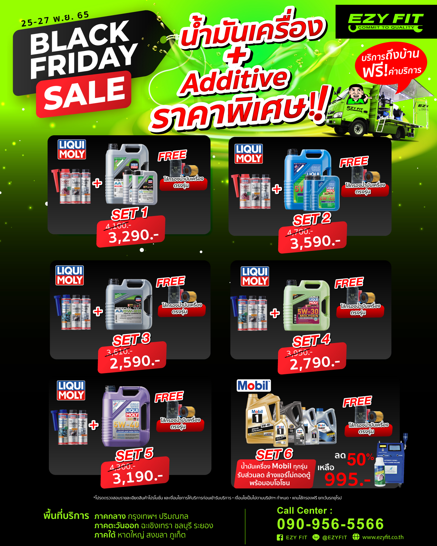 BLACK FRIDAY SALE น้ำมันเครื่อง+Additive ราคาพิเศษ!! ฟรี ค่าบริการเปลี่ยนถ่ายถึงที่บ้าน