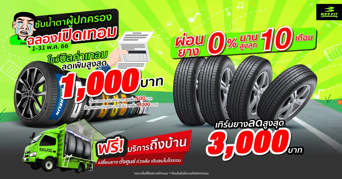 🚗 โปรยางรถยนต์ ส่วนลดเทิร์นยางเก่า สูงสุด 3,000 บาท