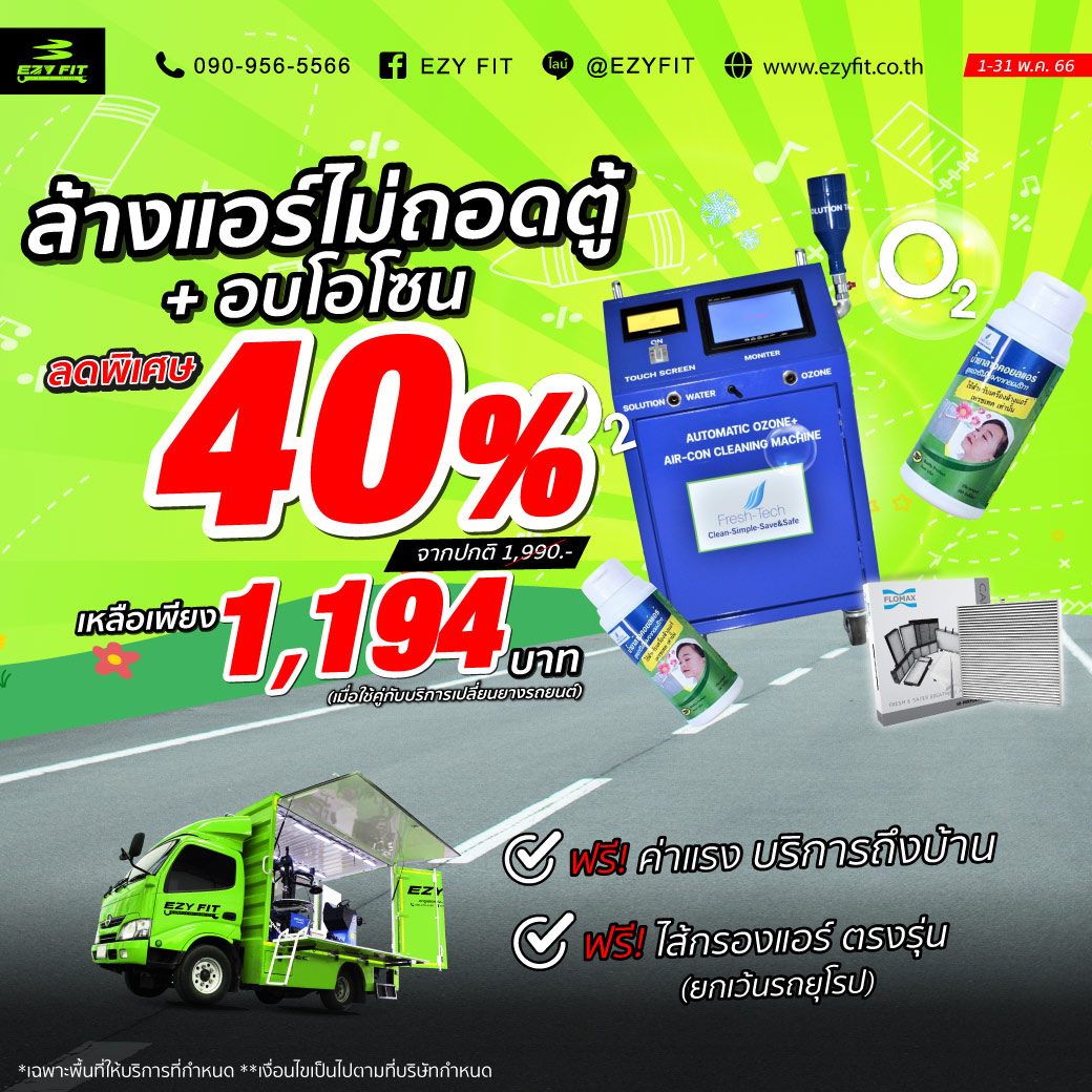 พิเศษ!! เมื่อใช้คู่กับบริการเปลี่ยนยาง ลดล้างแอร์ 40% เหลือ 1,194 บาท เท่านั้น