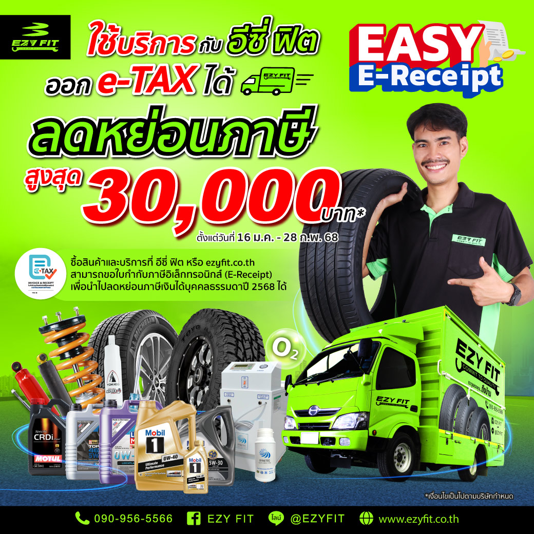 เมื่อใช้บริการเปลี่ยนยางรถยนต์ เปลี่ยนโช้คอัพและบริการอื่นๆ ใช้สิทธิลดหย่อนสูงสุด 30,000 บาท....