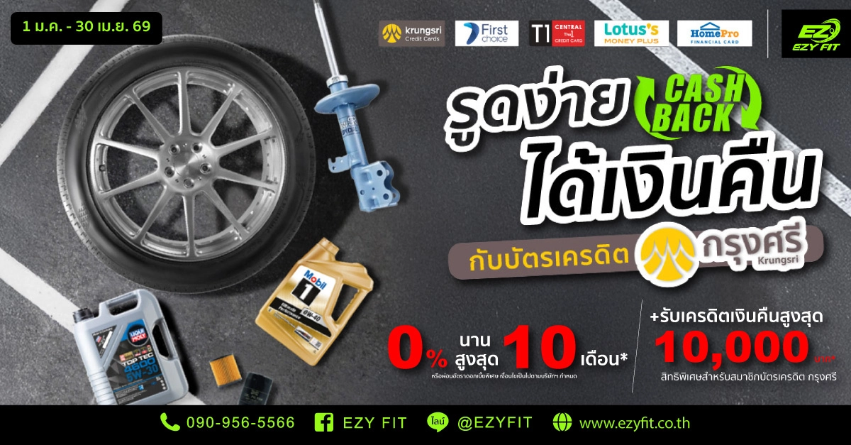 เมื่อซื้อสินค้าและบริการกับอีซี่ ฟิตโดยใช้จ่ายผ่านบัตรกรุงศรี รับสิทธิ์ผ่อนนานสูงสุด 10 เดือน และ แลกรับเครดิตเงินคืนสูงสุด 10,000 บาท l วันนี้ - 30 เมษายน 2569....