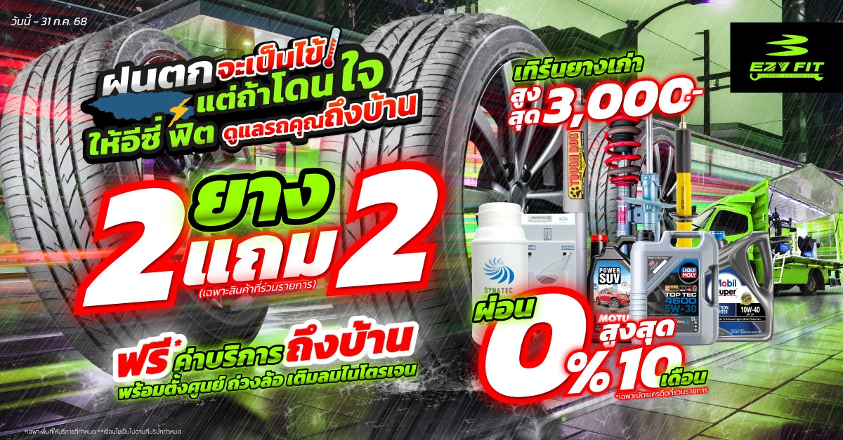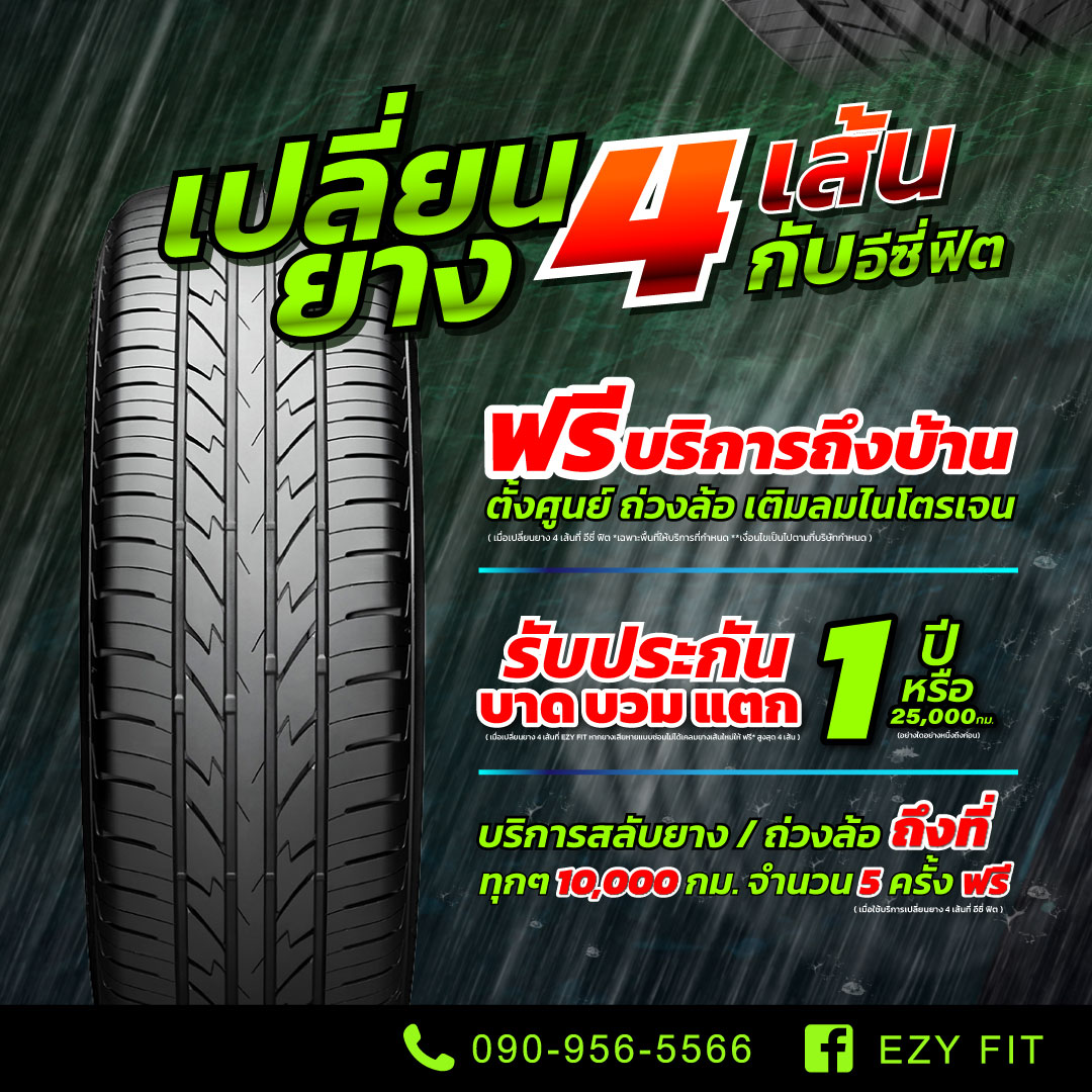 หน้าฝนนี้ไม่ต้องออกไปไหนรออีซี่ ฟิตไปบริการถึงบ้านได้เลยlโปรผ่อน 0% 10เดือน ยางซื้อ 2 แถม 2