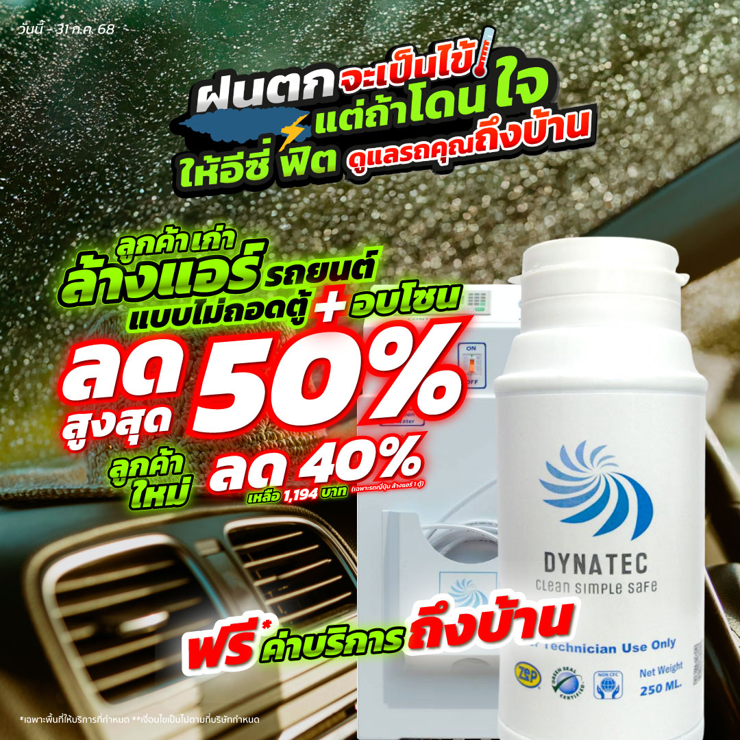 ❄️ ล้างแอร์ไม่ถอดตู้ พร้อมอบโอโซนฆ่าเชื้อภายในรถยนต์ ด้วยผลิตภัณฑ์คุณภาพ DYNATEC มาตรฐานจากอเมริกา (**ล้างด้วยกล้องเอนโดสโคป สามารถเห็นสิ่งสกปรกได้อย่างชัดเจน)