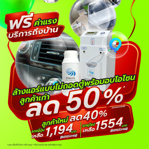 ล้างแอร์ไม่ถอดตู้ พร้อมอบโอโซนฆ่าเชื้อภายในรถยนต์ ด้วยผลิตภัณฑ์คุณภาพ DYNATEC มาตรฐานจากอเมริกา (**ล้างด้วยกล้องเอนโดสโคป สามารถเห็นสิ่งสกปรกได้อย่างชัดเจน)
