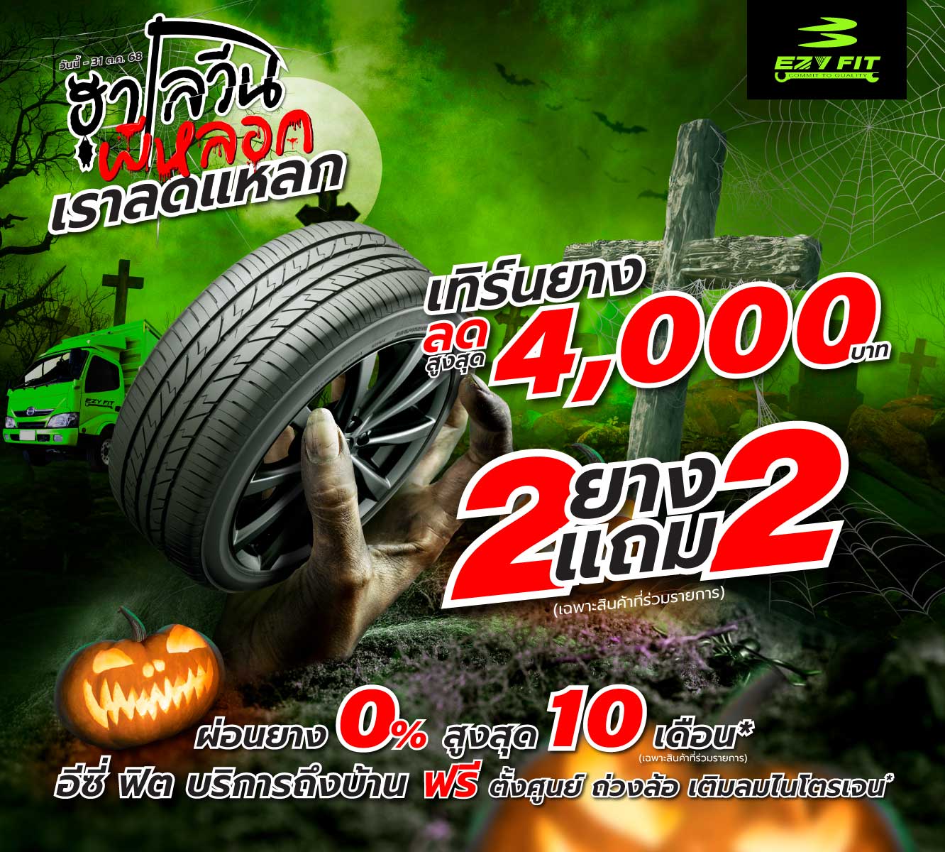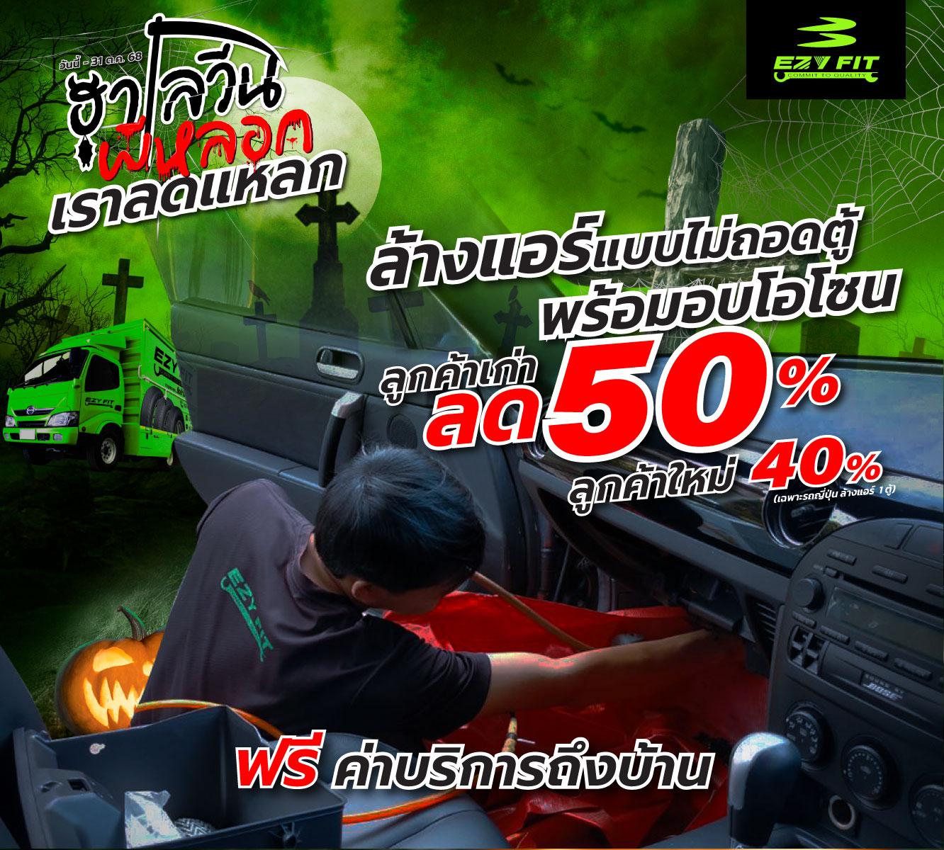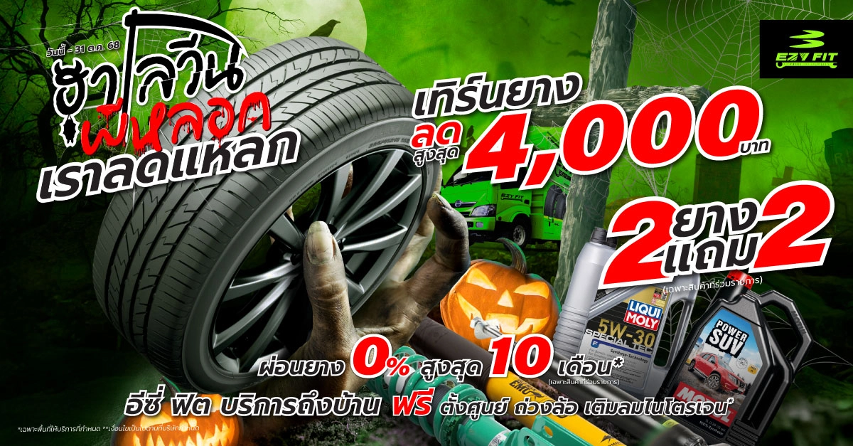 อีซี่ ฟิต มอบส่วนลดรับเทศกาลฮาโลวีน เทิร์นยางลดสูงสุด 4,000 บาท ล้างแอร์ไม่ถอตู้ลดสูงสุด 50% l ฟรี! ค่าบริการถึงที่บ้าน ตั้งแต่วันนี้ - 31 ต.ค. 68....