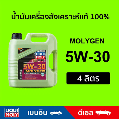 LIQUI MOLY MOLYGEN 5W-30 4L. เหมาะกับเครื่องยนต์เบนซินและดีเซล และเครื่องยนต์คอมมอนเรล น้ำมันเครื่องรุ่นนี้ยังผ่านการทดสอบสำหรับใช้กับ turbochargers และ catalytic converters ด้วย โดยน้ำมันเครื่องรุ่นนี้ที่มีแรงเสียดทานต่ำ มาพร้อมการป้องกันการสึกอย่างมีเสถียรภาพ เพื่อช่วยให้เครื่องยนต์ทำงานได้อย่างเกิดประสิทธิภาพสูงสุด และช่วยหล่อลื่น และช่วยขจัดสิ่งสกปรก เพื่อให้เครื่องยนต์นั้นมีความสะอาดอยู่เสมอ